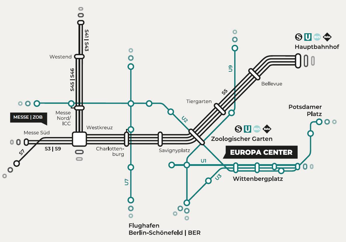 Das Europa Center ist aufgrund seiner zentralen Lage optimal an den individuellen und öffentlichen Personennahverkehr angebunden.
